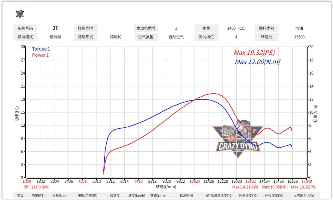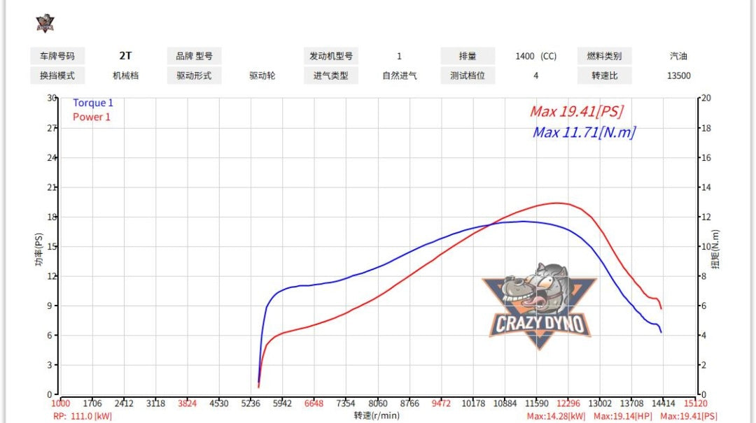 The bike’s stock configuration delivers a peak power of 19.32 PS and torque of 12.00 N.m. Providing the baseline performance for comparison.