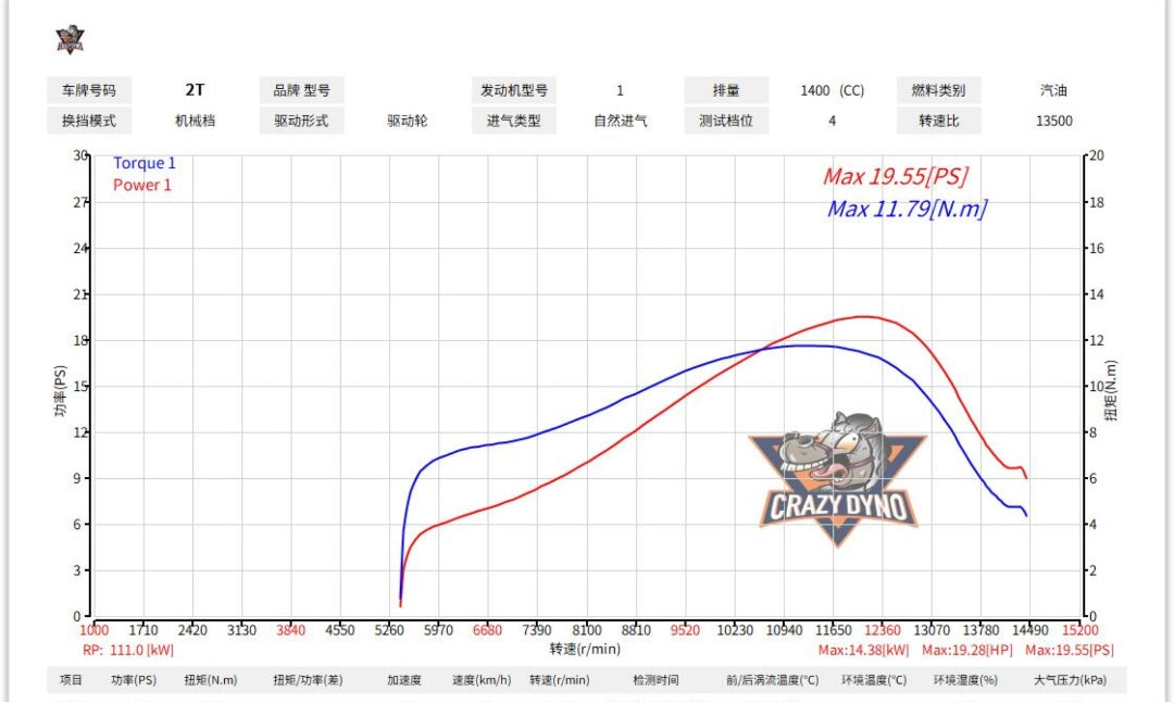 With the Electric Starter Kit installed and a fully charged battery, the bike maintains a peak power of 19.55 PS and torque of 11.79 N.m. Showing no significant power loss compared to the stock setup.
